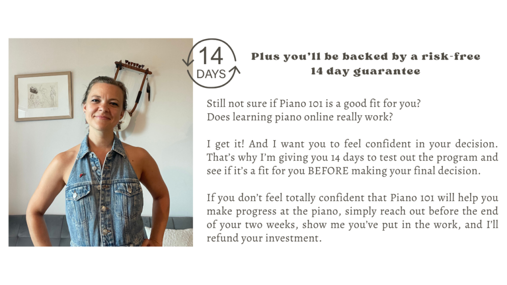 You’re here because you love music and you want to be able to express yourself at the piano. And I’m here to guide you on that journey and to cheer for you every single step of the way.